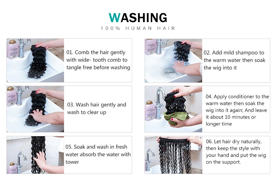 A3:When washing a wig,you can use some shampoo and conditioner,After washing a wig,do not shake it in a towel.Please don't style your wig when it's wet.